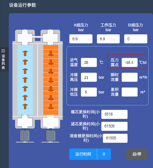 2019年運(yùn)行至今,干燥凈化一體機(jī)在貝騰物聯(lián)網(wǎng)平臺(tái)監(jiān)測(cè)到的壓力露點(diǎn)為:-48.4℃,完全滿足客戶-40℃的指標(biāo)要求,獲得客戶的高度認(rèn)可。