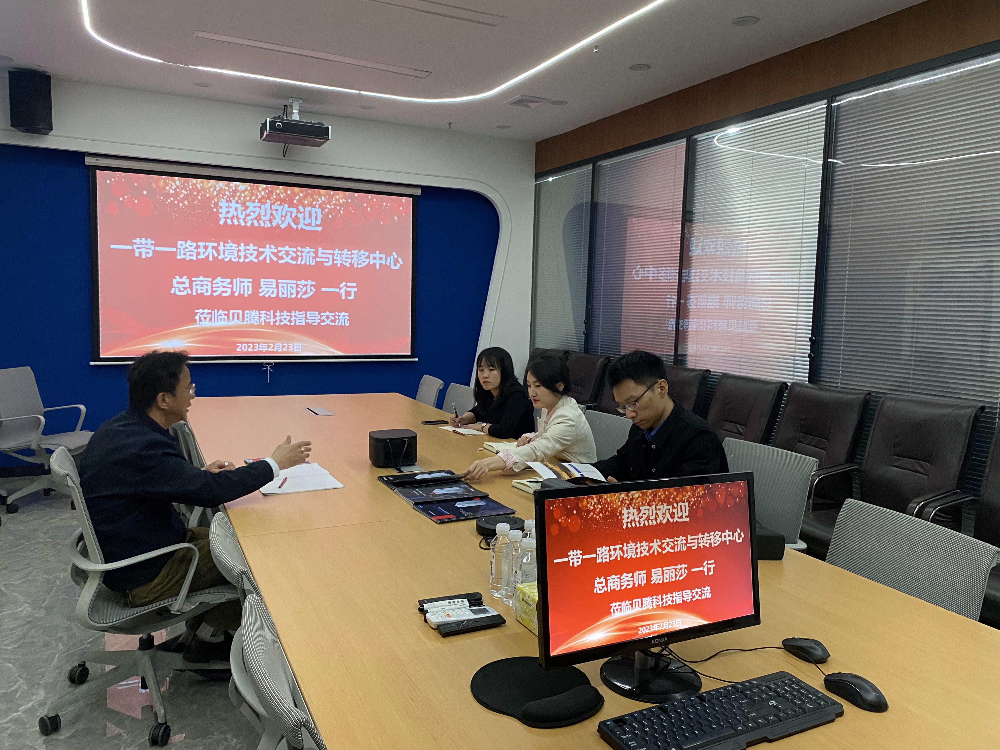 2月23日,一帶一路環(huán)境技術交流與轉移中心總商務師易麗莎一行蒞臨深圳市貝騰科技有限公司(以下簡稱“貝騰科技”)指導交流。