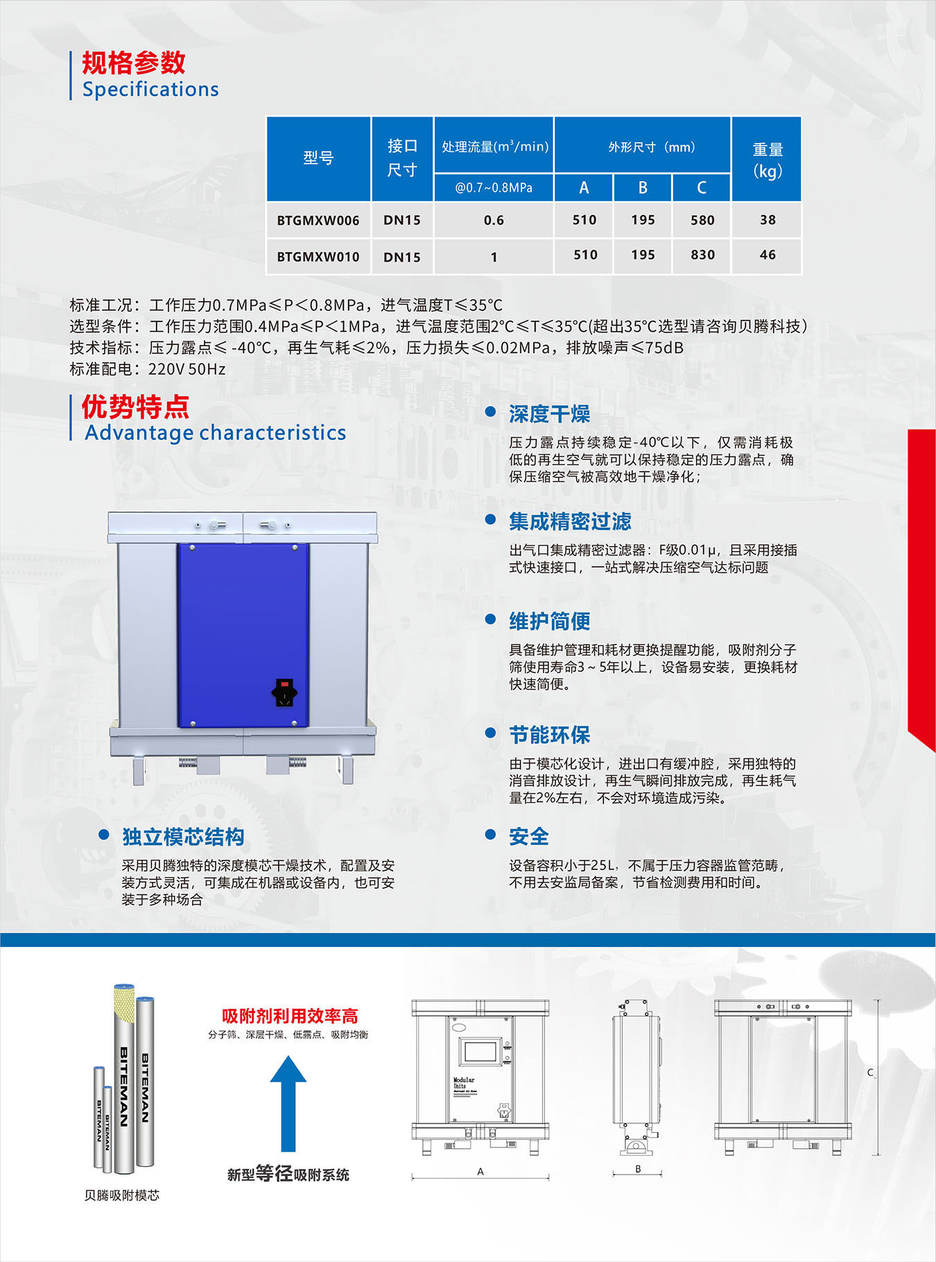 采用貝騰獨特的深度模芯干燥技術(shù),配置及安裝方式靈活,可集成在機器或設(shè)備內(nèi),也可安裝于多種場合。