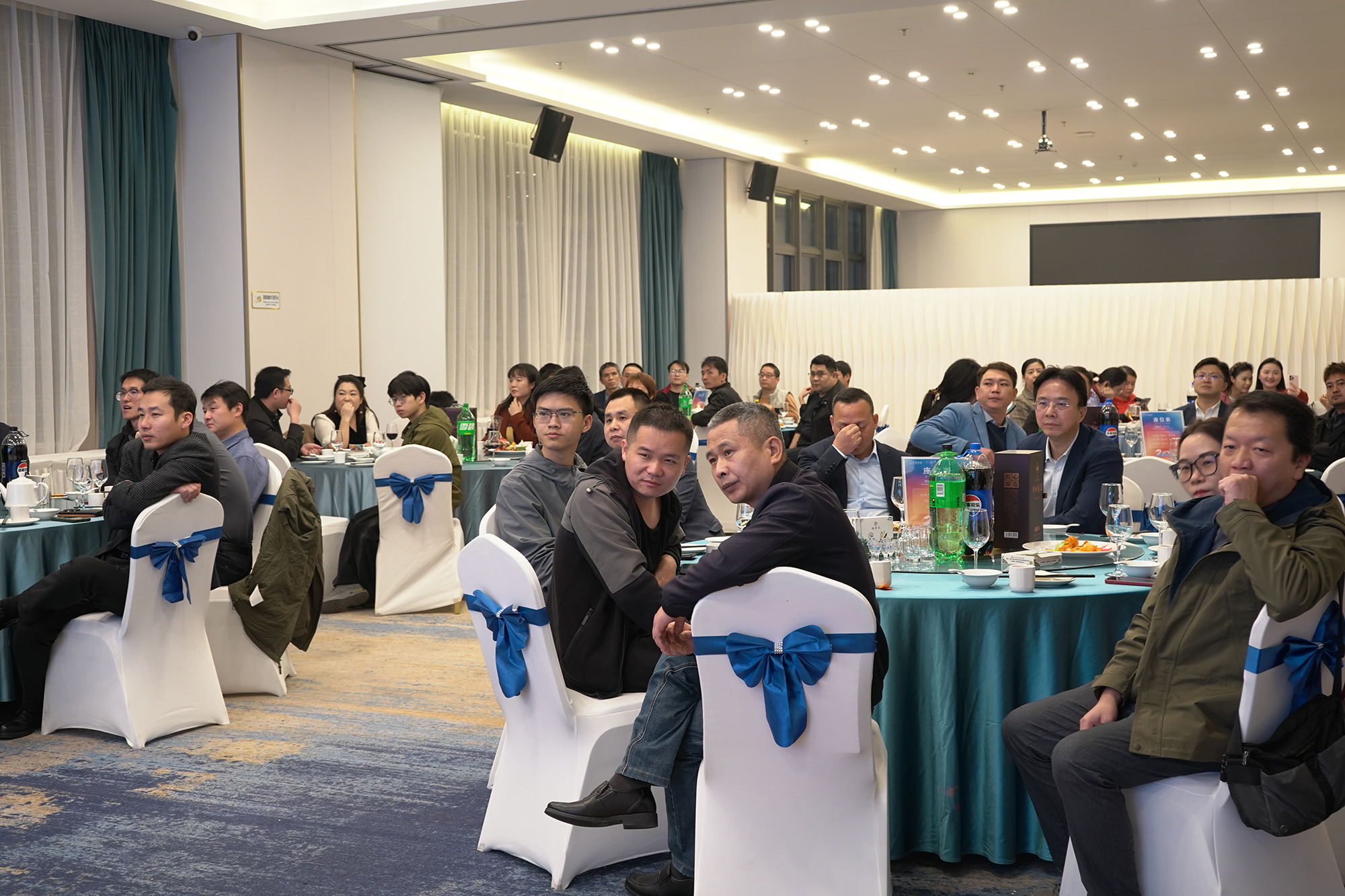 ? ? ? ?18:50分,袁教授、淮律師、郭總依次發(fā)表講話,他們從各自的專業(yè)領(lǐng)域出發(fā),對(duì)貝騰科技過(guò)去一年取得的成績(jī)表示高度認(rèn)可,并對(duì)公司未來(lái)發(fā)展提出了寶貴的建議和期望。貝騰科技創(chuàng)始人郭總在致辭中對(duì)全體員工的辛勤付出表示衷心感謝,回顧了 2024 年公司在市場(chǎng)、技術(shù)、產(chǎn)品等方面的突破與成長(zhǎng),同時(shí)深入分析了當(dāng)前行業(yè)發(fā)展趨勢(shì),明確了公司在新一年的戰(zhàn)略規(guī)劃和發(fā)展方向,強(qiáng)調(diào)貝騰科技將繼續(xù)秉持創(chuàng)新驅(qū)動(dòng)、品質(zhì)至上的理念,加大研發(fā)投入,提升產(chǎn)品競(jìng)爭(zhēng)力,不斷拓展市場(chǎng)份額,加強(qiáng)團(tuán)隊(duì)建設(shè),為客戶提供更優(yōu)質(zhì)的服務(wù),實(shí)現(xiàn)公司的可持續(xù)發(fā)展。郭總的致辭讓全體員工對(duì)公司未來(lái)充滿信心,為新一年的工作注入了強(qiáng)大動(dòng)力。致辭結(jié)束后,晚宴正式開(kāi)始,大家在輕松愉快的氛圍中享用美食,共同慶祝這一歡聚時(shí)刻。